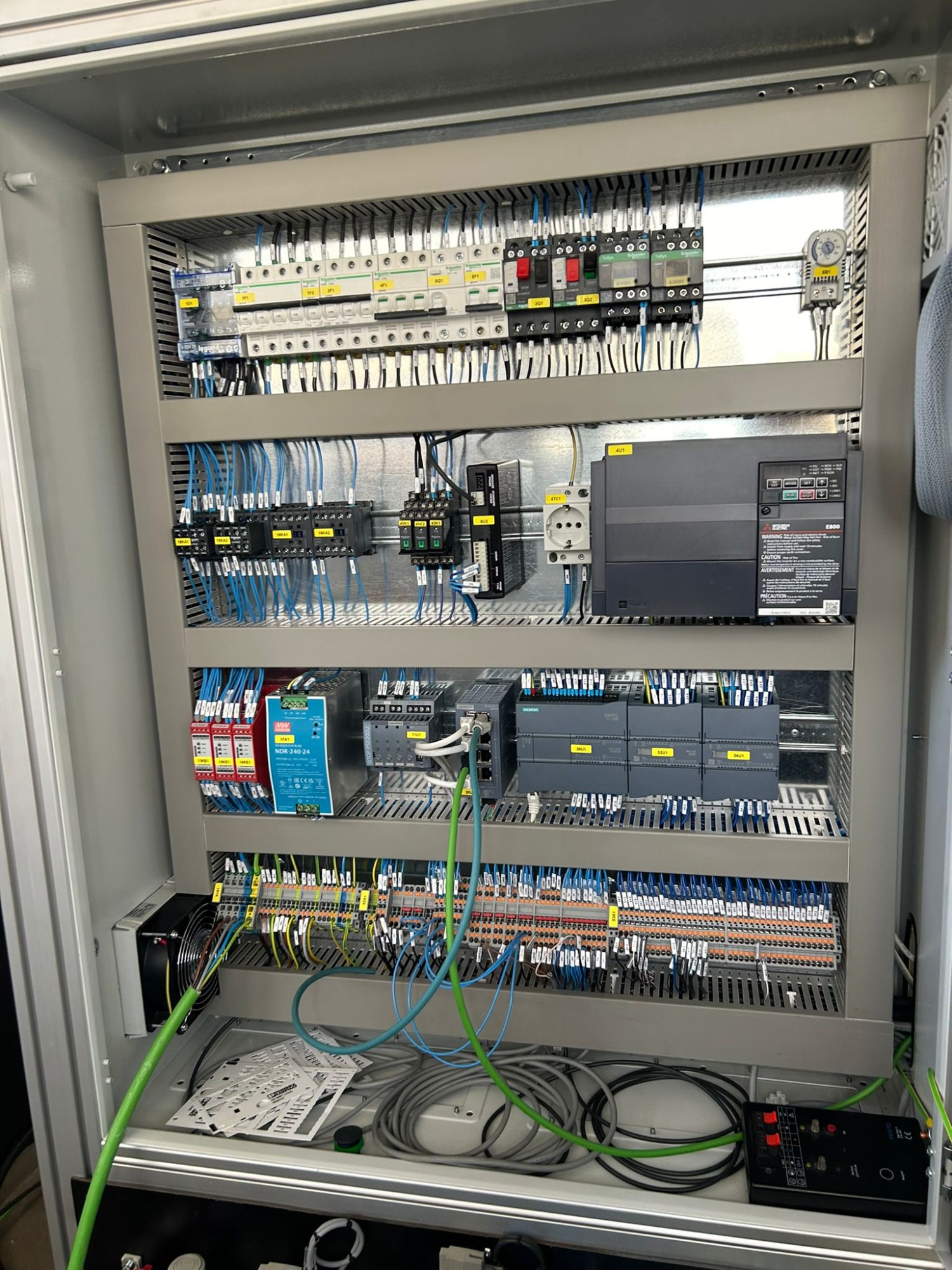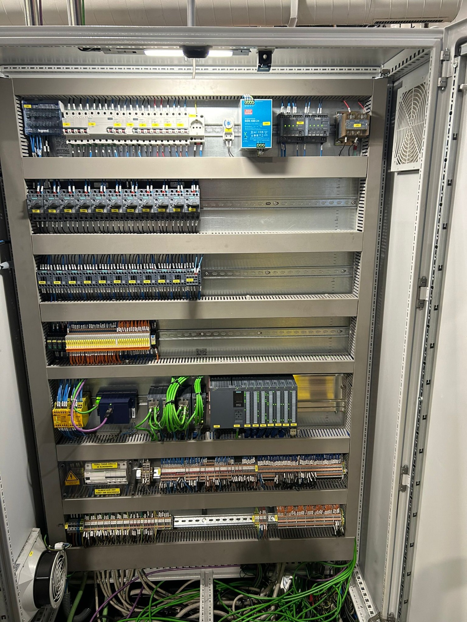 Otro de nuestros trabajos relevantes fue la implementación de automatismos eléctricos en una planta de envasado. Integrando tecnologías de control y monitoreo, hemos conseguido garantizar una mayor precisión en los procesos de llenado y etiquetado. Esto no solo ha mejorado la calidad del producto final, sino que también ha incrementado la capacidad de producción, destacando la importancia de la automatización en el entorno industrial moderno.